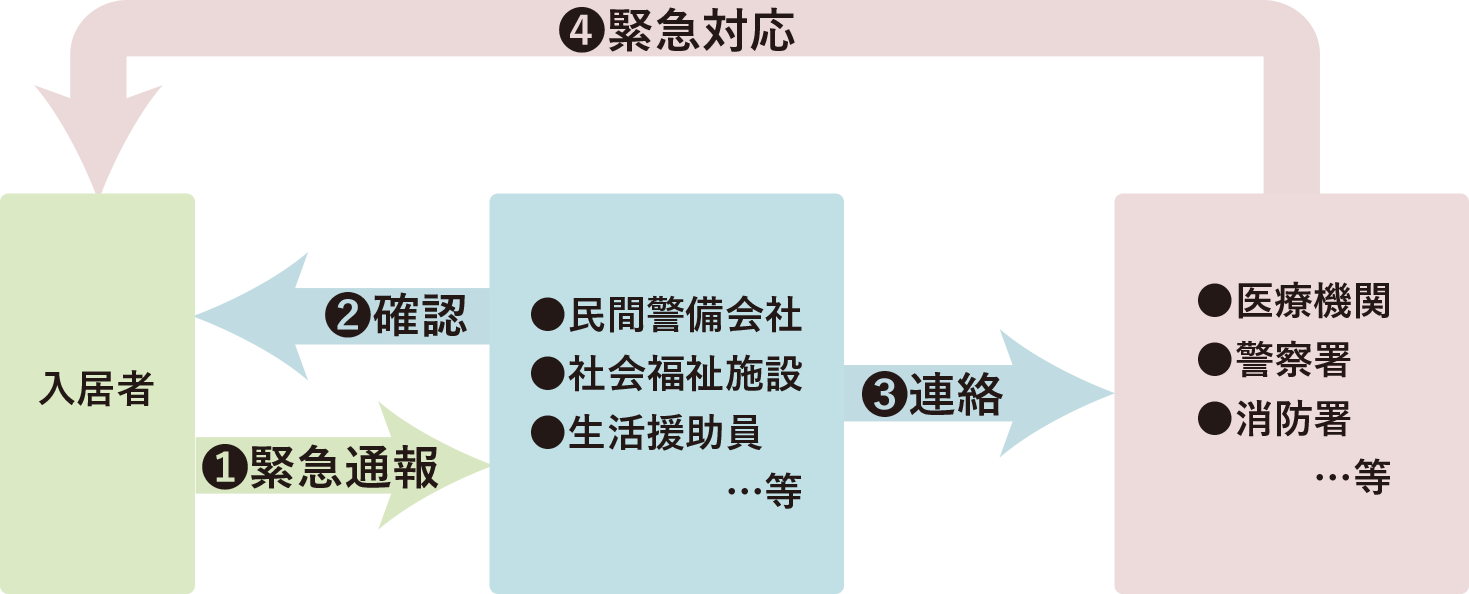 緊急通報装置急に気分が悪くなった場合などに緊急通報装置を使って、連絡できる体制が整っています。