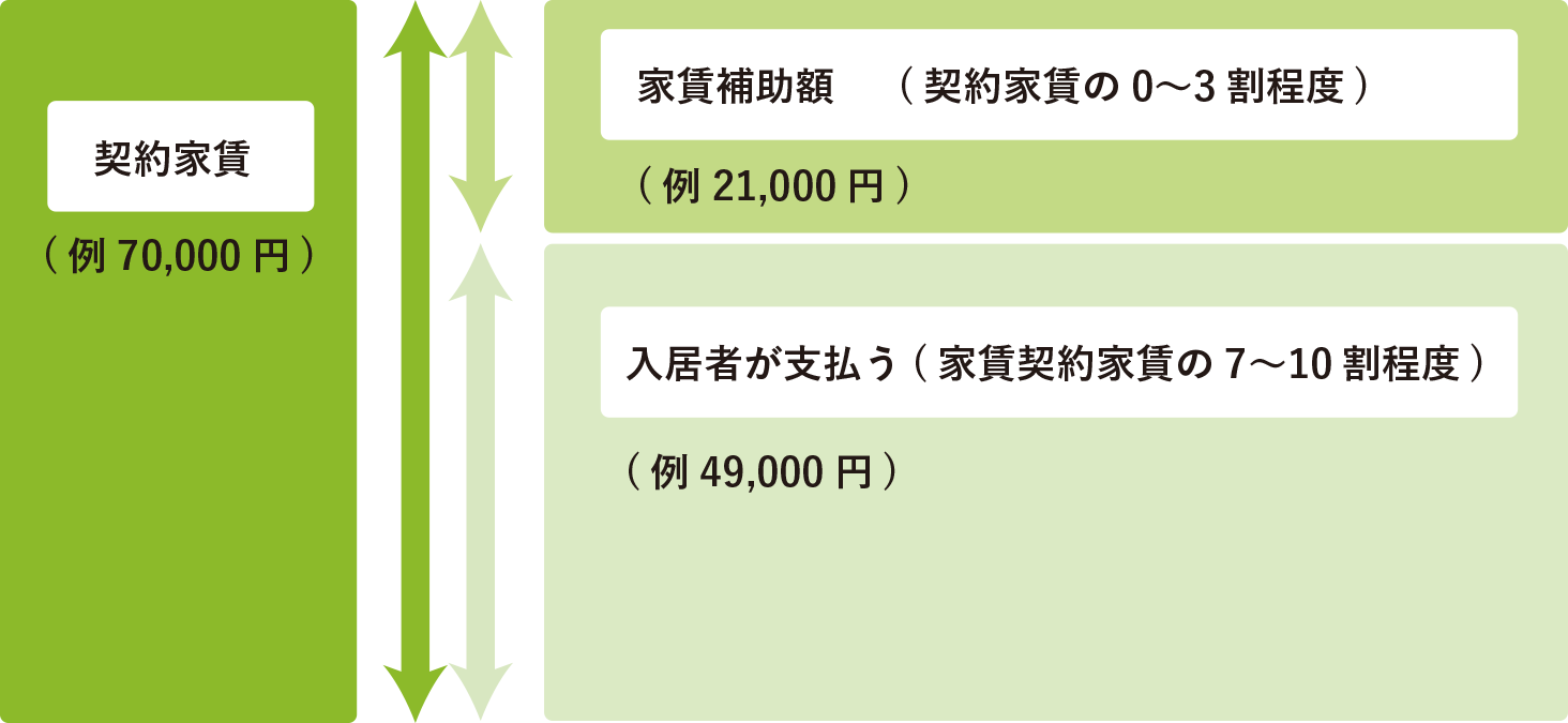 (事業者に対し市が家賃の一部を補助しますので、入居者は契約家賃から家賃補助額を差し引いた額を支払うことになります。)