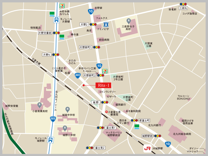 | 交通 | JR日豊本線「城野」駅 徒歩7分(550m) |
