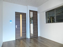 インターネットWiFI月額無料!追焚機能・ガスコンロ付き!オートロック・TVドアホンでセキュリティーも安心です!白い床に建具をダークブラウンにまとめたシンプルモダンのお部屋です。